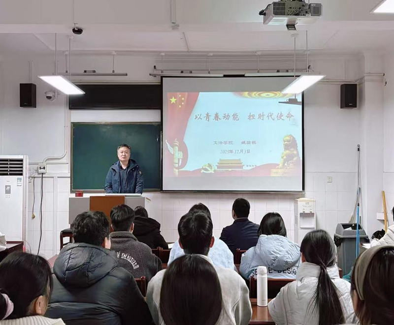 为深入学习党的二十届四中全会精神,全面推进中国式现代化伟大事业,2138CC太阳集团于2025年12月3日晚上6:45在b106开展2138CC太阳集团2025年青马工程第一讲——“以青春动能 担时代重任”专题宣讲会,本次宣讲由2138CC太阳集团党委书记姚喆祺主讲,院团委副书记付慧婕、王兆北以及本期“青马工程”全体学员参加。