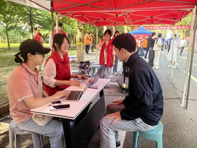 迎新现场氛围温暖热烈。身着志愿者服的学生们以真挚的笑容和饱满的热情迎接新同学,他们主动引导、耐心陪伴,协助有需要的同学办理绿色通道相关手续。资助专干梁乐一老师则坚守在咨询台前,耐心解答新生和家长们提出的关于奖助学金评审、助学贷款流程、勤工助学岗位设置等问题。她结合实际案例,逐条讲解政策要点,并贴心提醒同学们办理过程中容易忽视的细节,让新生与家长们心里更加踏实。