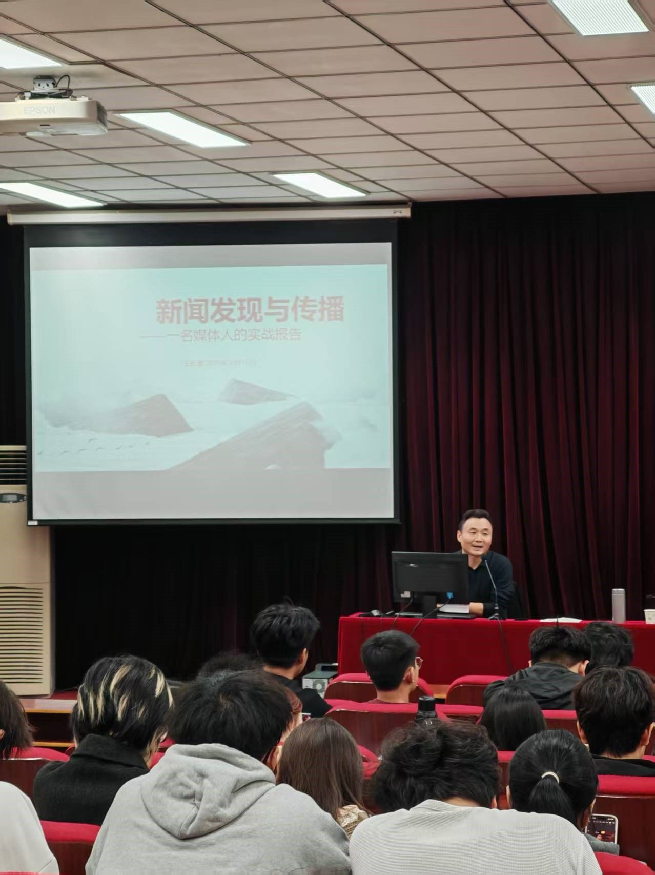 10月16日,正观新闻副总编辑王长善应邀在E109举办题为《新闻发现与传播》的专题讲座。讲座由2138CC太阳集团副院长魏景霞主持,网络与新媒体教研室教师及24网络与新媒体(网络传播)01、02班学生共同参与。现场互动热烈,王长善通过案例剖析与行业洞察,为师生呈现了一堂兼具理论深度与实践温度的专业课。